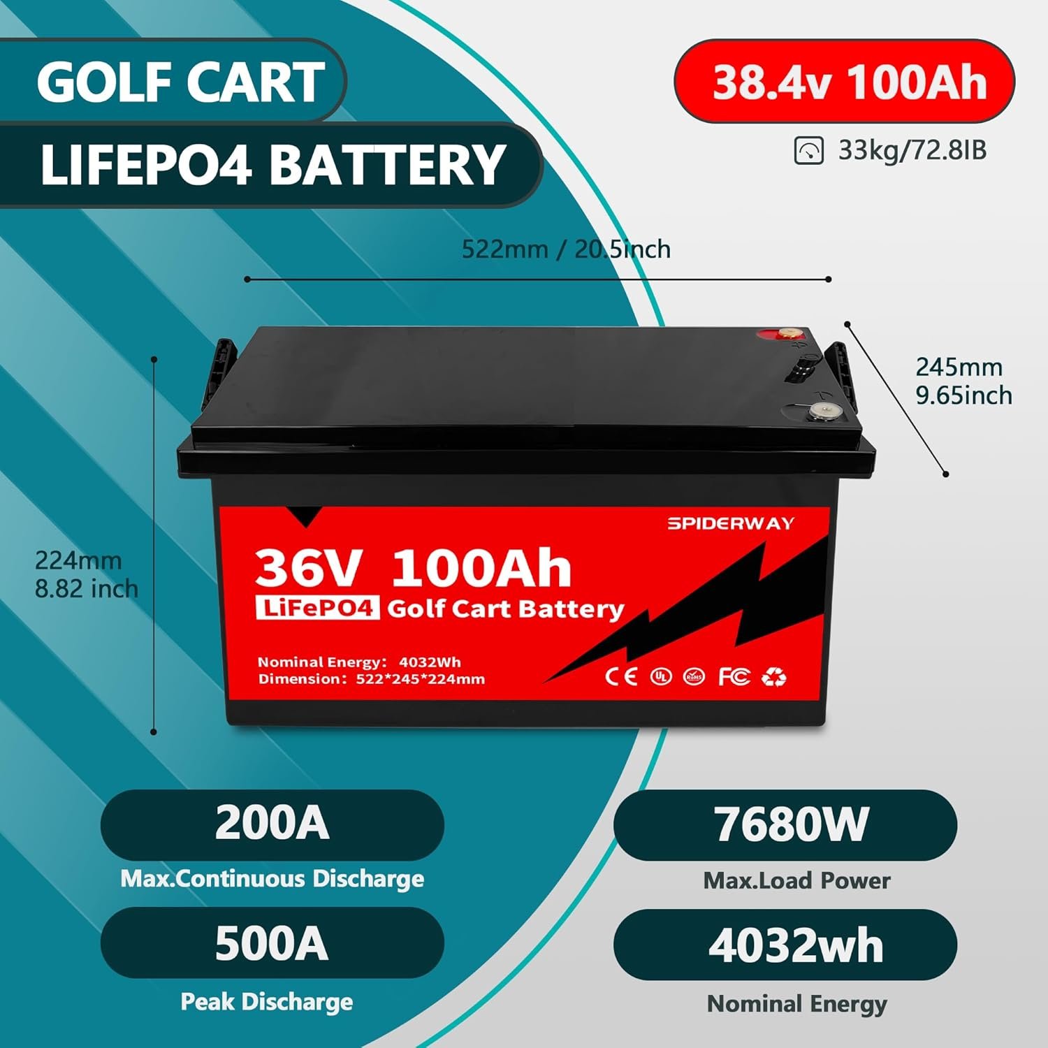 36V (38.4V) 100Ah ABS golf cart lithium battery – high-performance lithium iron phosphate (LiFePO4) battery pack